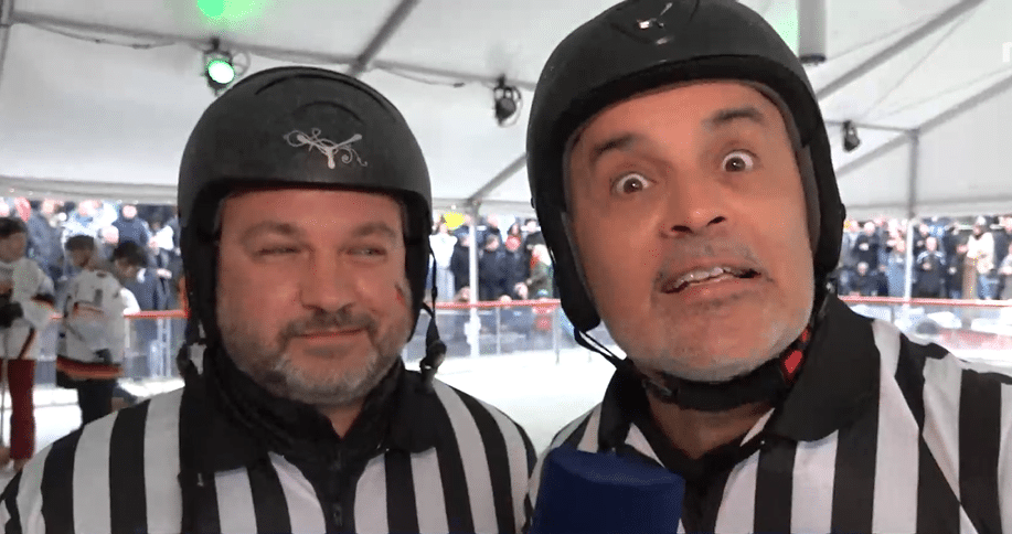Grosse Gesten, emotionsloser Gesichtsausdruck, gefürchtete Entscheidungen – das ist ihr Metier. Sie sind die einzigen, die wirklich 3 x 15 Minuten auf dem Eis stehen, immer im Mittelpunkt des Geschehens – immer am Ball. Das erklärt auch den ständigen Blick auf die Uhr: wann gibts endlich Glühwein!